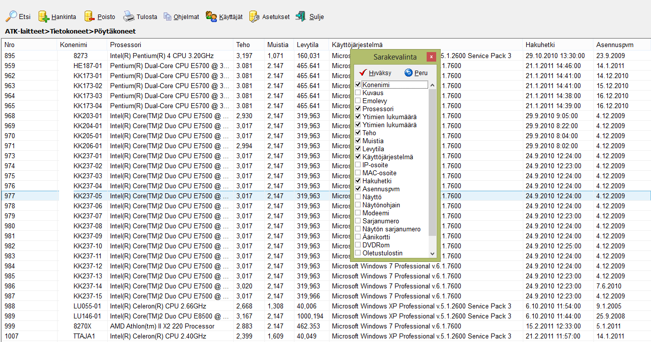 Voit luoda luettelonäkymän, josta helposti voidaan päätellä tietokoneiden ikä ja resurssit, jolloin tietokoneita voidaan korvata uusilla koneilla optimaalisimmin. Tämä lisää organisaatiossasi työntekijöiden työtehoa huomattavasti. Ominaisuuksia: