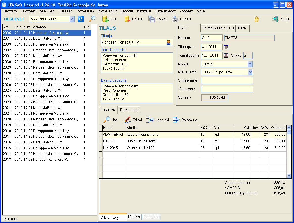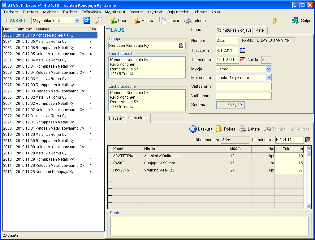 5.1.2011 on julkistettu tilausten hallinta -osio, joka on laajennos Lasse-laskutusohjelmaan.